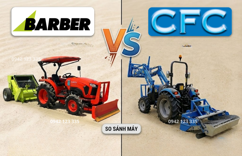 | Kích thước, trọng lượng | Kích thước (Dài x rộng x cao): 145 x 201 x 101cm, trọng lượng: 420kg | Kích thước (Dài x rộng x cao): 230 x 193 x 114cm, trọng lượng: 855kg | Máy CFC có kích thước nhỏ gọn, nhẹ hơn so với máy Hbaber. Điều này giúp cho việc di chuyển và làm việc trên bãi biển dễ dàng hơn tránh bị lún khi làm việc. Máy H Barber có kích thước lớn và nặng dễ bị lún. |