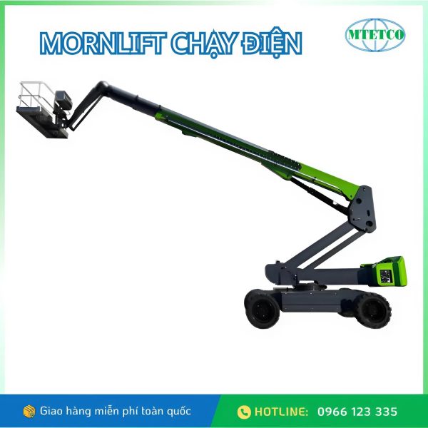 Xe nâng người ống lồng Mornlift chạy điện là giải pháp làm việc trên cao an toàn, ổn định và tiết kiệm năng lượng. Cấu trúc cần ống lồng cho phép vươn xa và nâng cao chính xác, rất phù hợp cho bảo trì, lắp đặt, thi công trong nhà và ngoài trời.